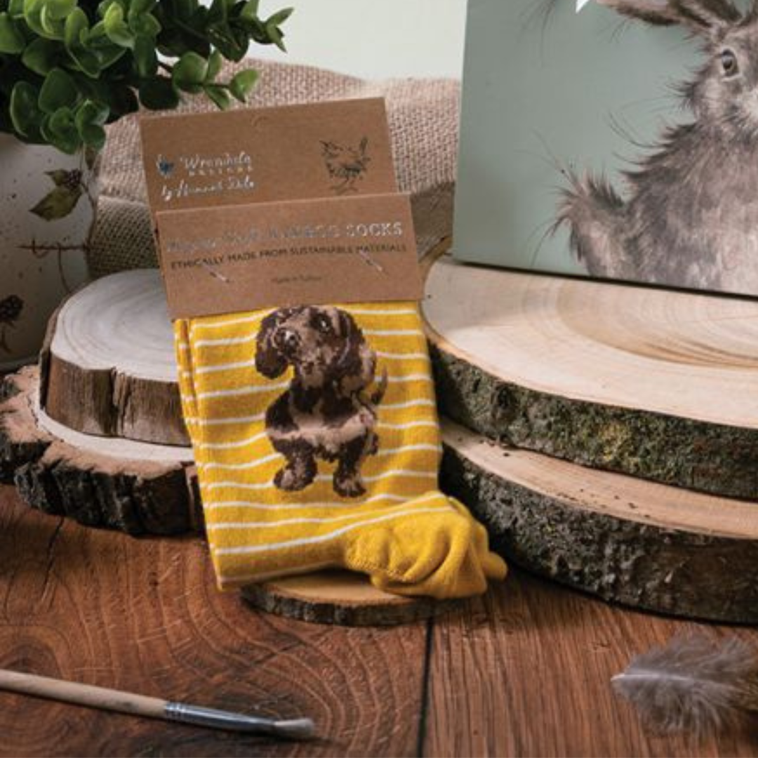 A treat for your feet, this wonderful pair of socks features an adorable dachshund stitched onto super soft bamboo material. As well as being naturally anti-bacterial, moisture wicking, super soft, warm and breathable, our socks are kind to the environment too. One size (women's). Viscose derived from bamboo with nylon stitching. Machine washable. Each pair of socks comes with a beautifully illustrated gift bag making a wonderful gift.