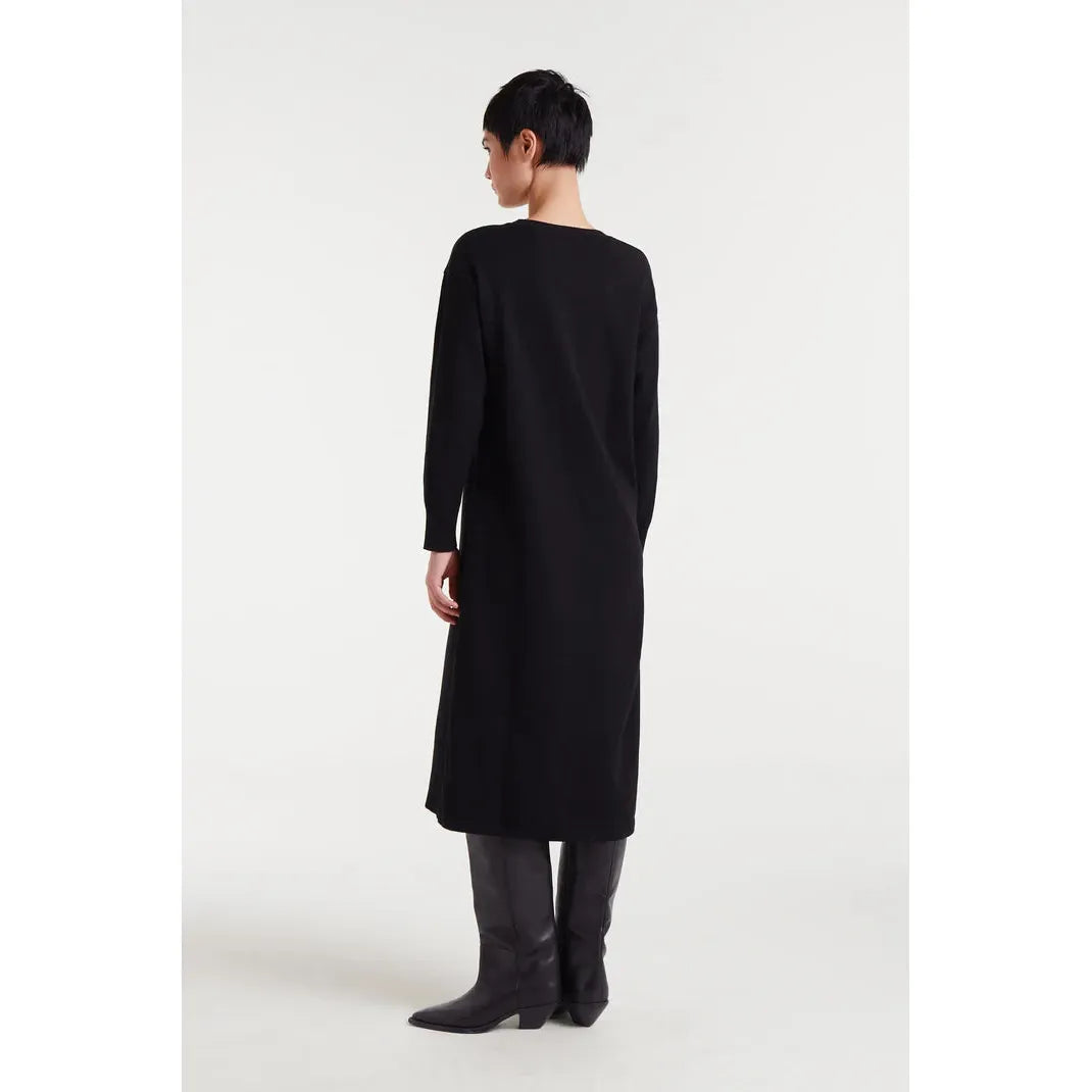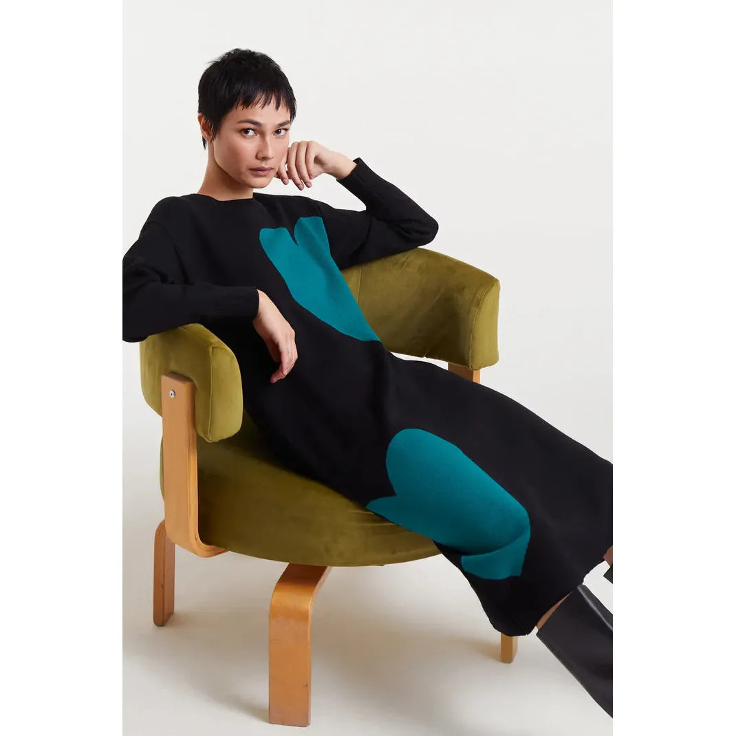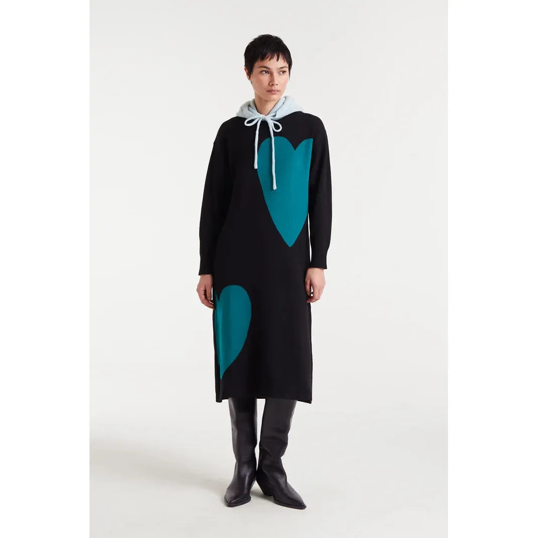 Jacquard midi dress with a Super Green Heart print. Round neck and long sleeves. Slightly dropped shoulders. Ribbed details.