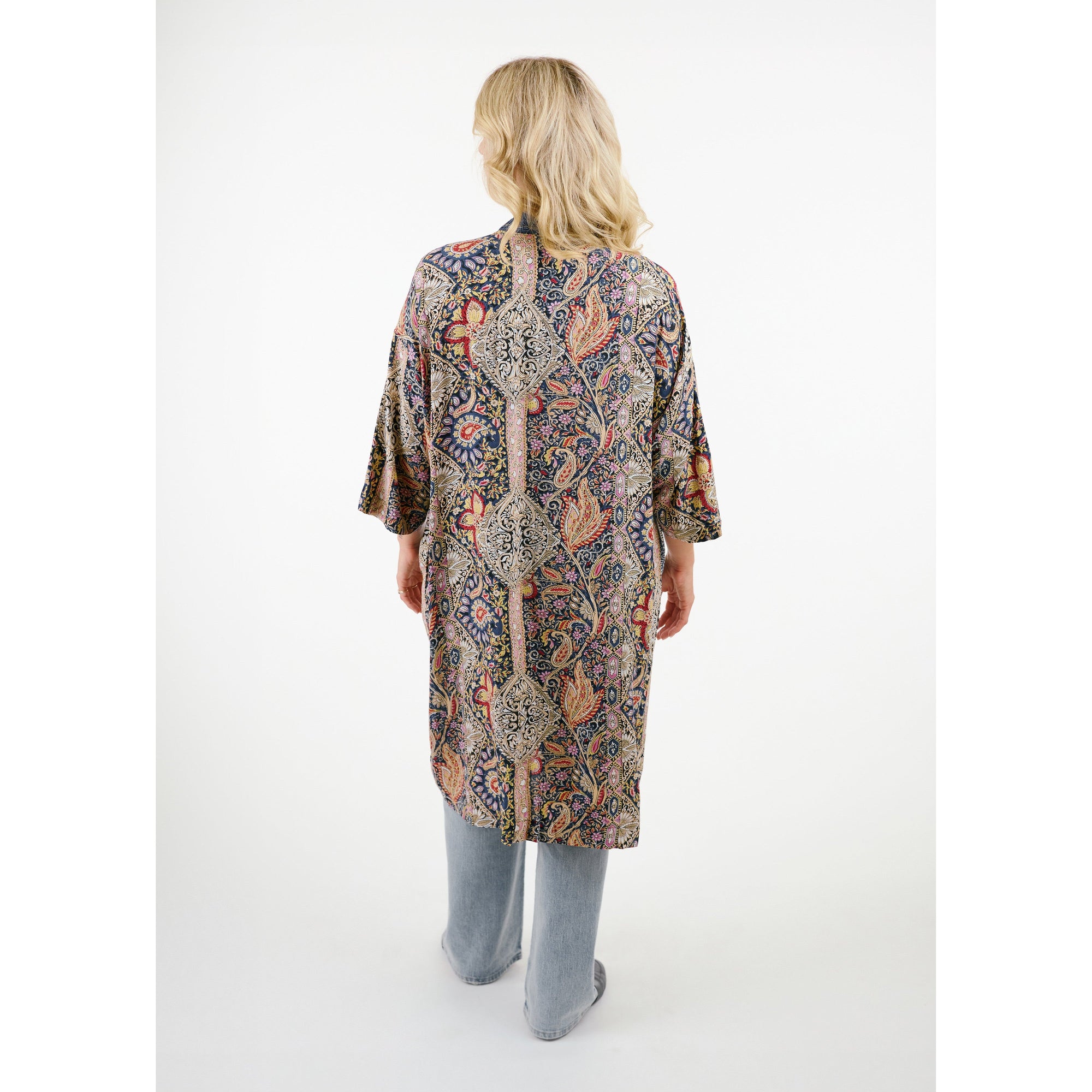 Crafted from eclectic mix of fabrics, including recycled denim, this lightweight cardigan will keep you warm without weighing you down.