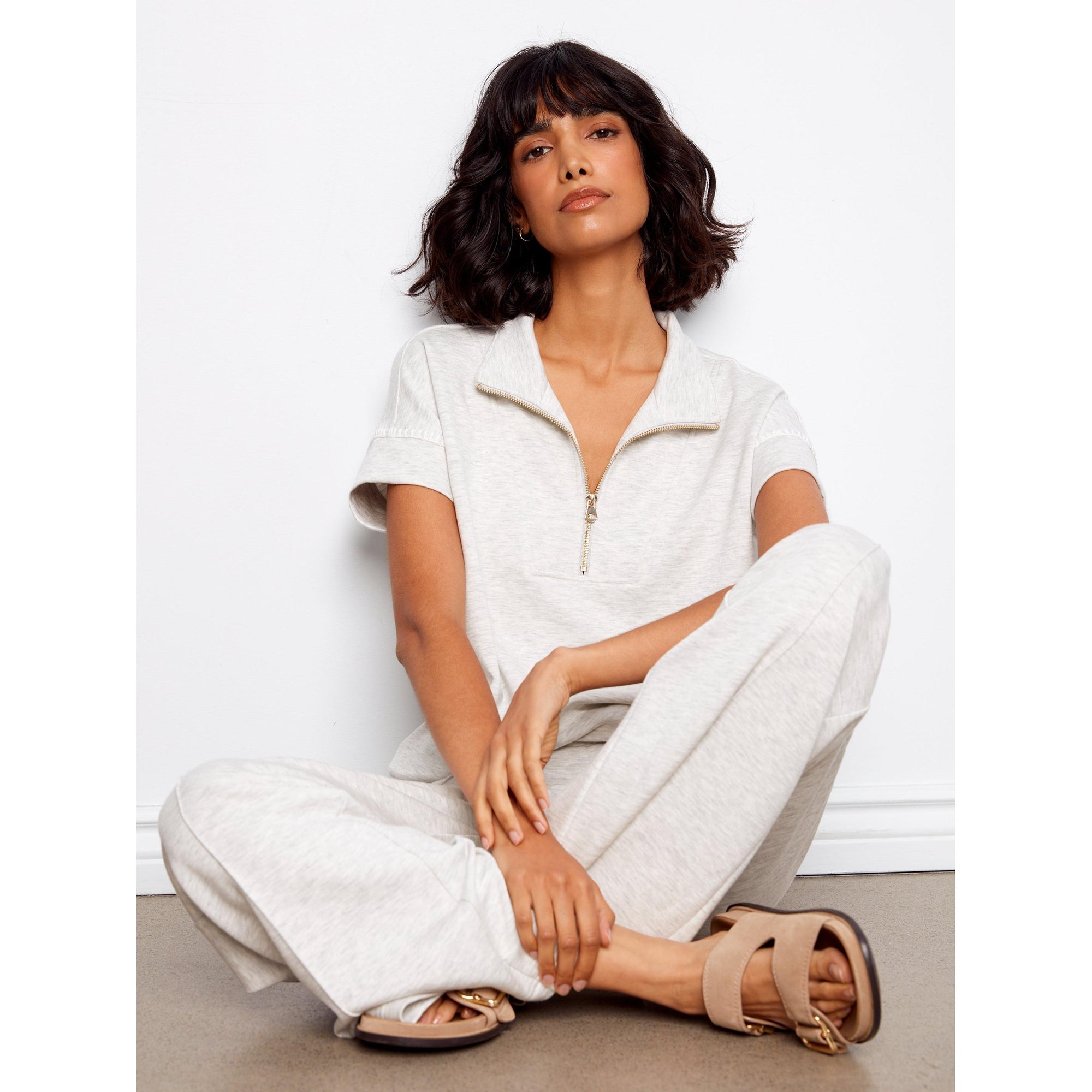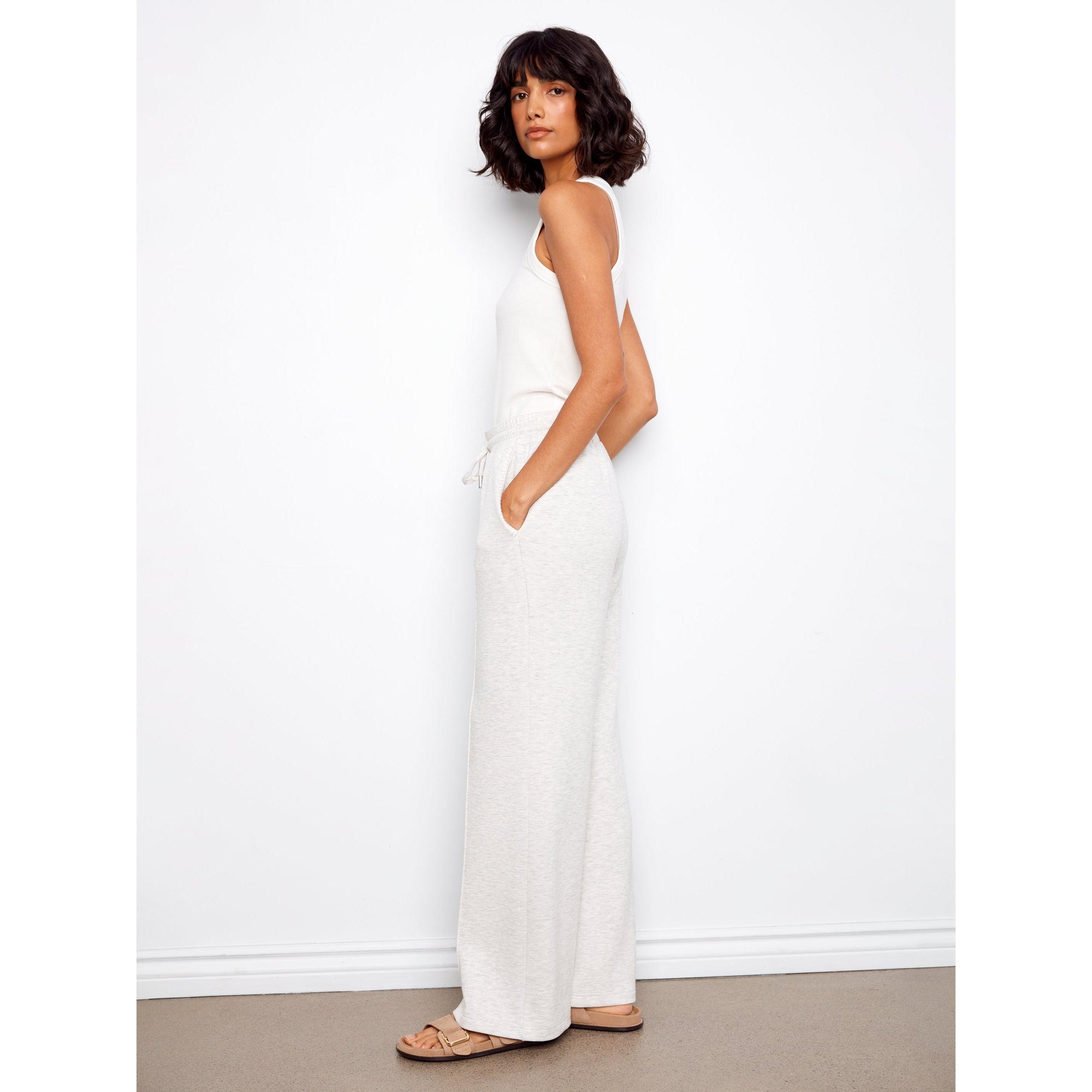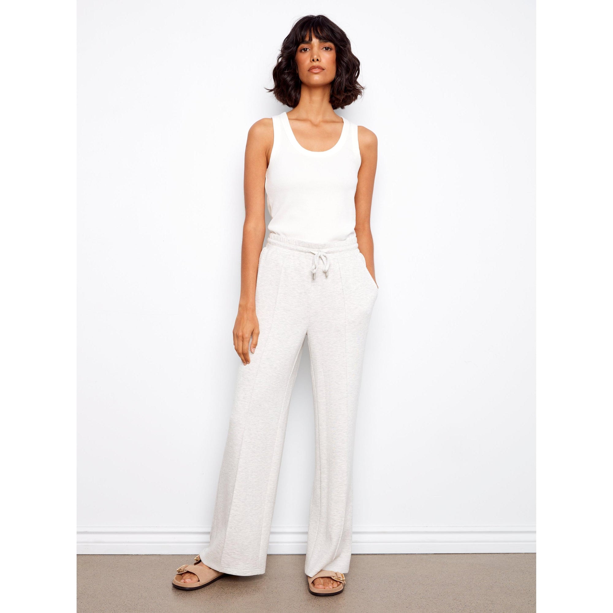 Discover the ultimate in comfort and style this spring with our wide-leg jogger pants in a trendy light grey shade. Made from soft, cozy scuba fabric, these wardrobe essentials are perfect for lounging or running errands. With a relaxed fit, elastic waistband, and adjustable drawstrings, they offer all-day comfort.