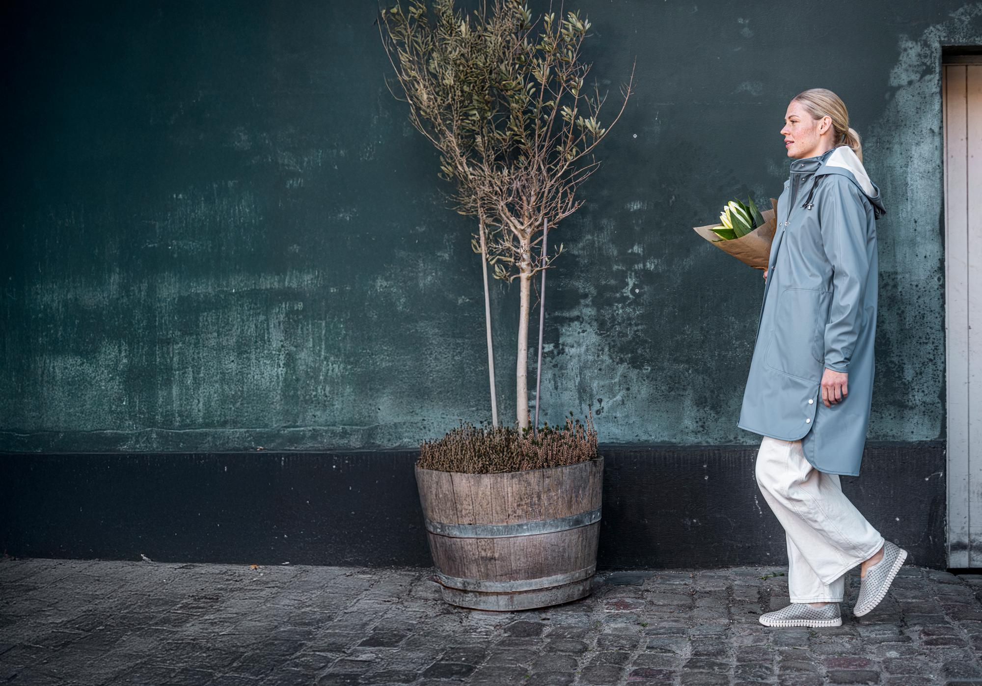 This A-shaped raincoat from ILSE JACOBSEN is a modern interpretation of the classic raincoat with a loose fit and details that makes it suitable all year round. Just add a sweater or a quilted layer underneath when the temperature drops!