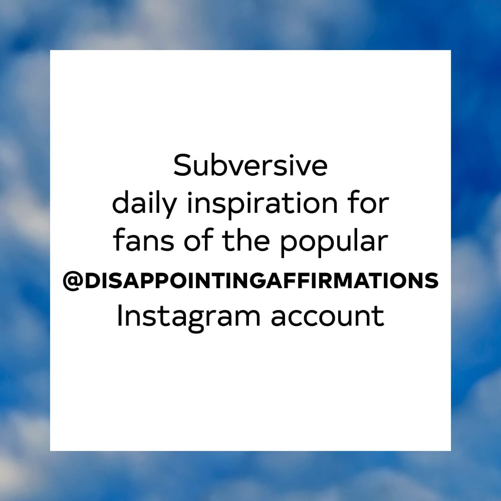 National bestselling author Dave Tarnowski, the visionary behind the 2.4-million+ follower @DisappointingAffirmations Instagram account, presents a life-changing* deck of hilariously realistic affirmation cards that offer guidance and sympathetic wisdom for a disappointing world.*your results may varyToxic positivity is a drag. Failure is always an option. Use these affirmation cards to find clear-eyed, realistic inspiration and motivation to cut through the bullshit, get things done, or don't. Select a card daily, weekly, or moment-by-moment as the need arises, for such guidance as: You will get through this, I promise you. / You don’t really have a choice. You are good enough. / Not the best, but you’ll do...and so on.