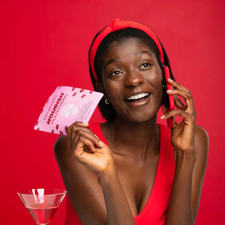Formulated with Multivitamins, Super Fruit Complex and Multi-molecular Hyaluronic Acid. A fitted sheet mask that hugs the contours of the face with a metallic lip print to hydrate the skin in 15 minutes.