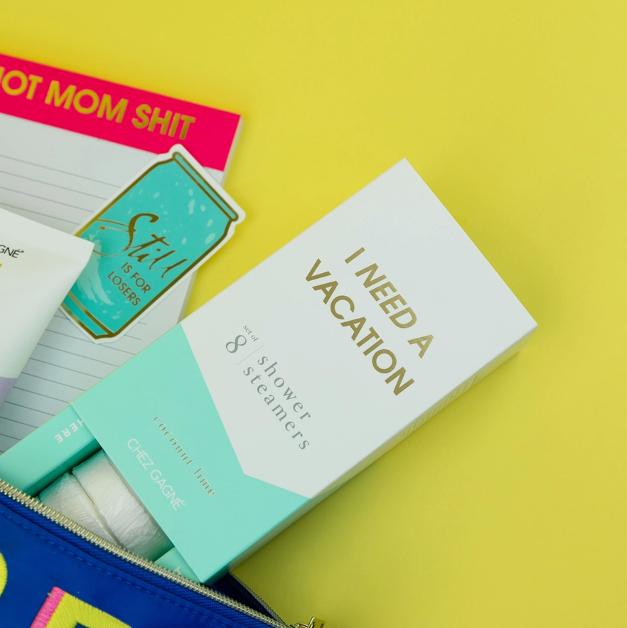 The I Need A Vacation Coconut Lime Shower Steamers bring the beach to your bathroom. Infused with essential oils, these steamers combine creamy coconut with zesty lime to turn an ordinary shower into a tropical escape. Perfect for gifting, self-care, or anyone craving a five-minute getaway, this vegan, cruelty-free set is made with clean ingredients in the USA and packaged in a bold, gift-ready box. Set of 8.